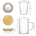 MULTIFUNCTIONAL INFUSER - 15oz Glass tea cups with natural bamboo lid and infuser basket great for steeping loose leaf tea, rose tea, black tea, green tea, blooming teas, oolong, fruit tea, coffee, etc. Easily to removable and clean.