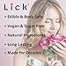 MADE IN THE USA in facilities that follow rigorous quality controls, LICK Edible Body Oil for adults is sugar-free, non-sticky and bottled in a travel-friendly bottle with leak-resistant disc-top cap.
