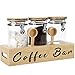 [Coffee Container with Shelf ]: Liengoron coffee tea sugar container set shows the wood and glass combination beautifully, minimalist design. High-qualified borosilicate glass jars, you can see all the inside contents so no need for labeling. Overall the lids sits on nice and tight. This coffee and sugar canister set with spoon looks great on the counter and will go with any color in kitchen or bath.