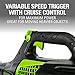 2-SPEED CONTROL Go fast for the open lawn, then slow it down for tight corners. You’ve got the speed flexibility for multiple leaf blower jobs