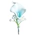 Latex real touch Calla lilies in Turquoise Picasso color, wrapped silver ribbon, rhinestone bling. With Pin.