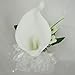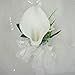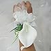 Latex real touch Calla lilies in off white color, with greenery and lace bow, wrapped ivory ribbon. Pearl elastic Wristband.