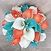 Latex real touch Calla lilies in Cream Turquoise Coral color, wrapped white ribbon and bling.