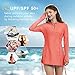 【Thumb Holes and Half Zip Neckline】Our women's rash guard shirt has no padding and features a chest half-zipper that makes it easy on and off. Laser cut opening at the bottom of the sleeve to give you the option to put your thumb provide comprehensive protection against ultraviolet rays.
