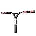 HIGH QUALITY SPECS - Look professional!you can do whatever tricks ! That’s because the trick scooters are packed with high quality components! Total height 34.3” comfortable soft grips(165mm), aluminum One-Piece Fork, CNC clamp with Two M8 bolts tightly lock the handlebars .Tough aircraft-grade aluminum deck (120*515) , T 4/T6 heat treatment re-entry strengthening process makes the handlebars and decks features of durability