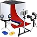 【Package Content】[1x] 24" x 24" Premium Quality Photo Box Light Tent [2x] LED Light [1x] Side Cover [1x] 4 Color Backgrounds (Blue, Black, White, Red)