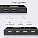 【Remote Control & One-Touch Switching】You can easily switch between 4 computers by pressing the button or pressing the remote control, the flashing LED indicating the active computer. Remote control is used for long-distance control USB switches, it can be disabled for use in RF-sensitive environments.