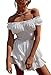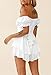 Off shoulder boho rompers, smocked waist, short puff sleeve, swiss dot, ruffle hem, a-line flowy shorts jumpsuits