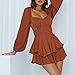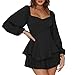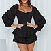 Sexy ruffle layered short romper for women, long puff sleeve boho one piece outfits