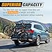 【70LBS Weight Capacity】This bike rack can support 2 bikes and up to 70lbs of weight, and safely transport them to your destination without contorting. The bike rack features tough forged iron construction with e-coating which defies sun and snow exposure. Heat stabilized nylon straps of the bike rack for car are more degradation & wear resistant compared to rubber straps of other bike racks on the market.