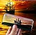 The bottle on stand measures over 3" (10cm) high, 12” (31cm) wide and 3” (10cm) deep; Ship measures over 3" (8cm) high, 5” (14cm) long and 1” (5cm) wide