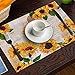 ✅ High-quality Materials: This sunflower table runner and placemat set is made of Cotton and linen, which combines the advantages of cotton and line, making the table decorations durable and comfortable. Simple sunflower print which gives it an elegant and chic charm of the dining table.