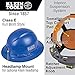 Safety hard hat has patent-pending accessory mounts on front and back attach Klein Headlamps securely, every time — no straps or zip ties needed!