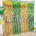 TROPICAL PARTY DECORATIONS: 2 packs of green light brown and yellow foil fringe curtains, Extra large size (width x drop) 3.3 x 6.6 ft each, perfect for Hawaiian luau party decorations.