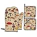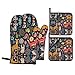4 PIECE SET:2 oven mitts (7.2x11in) + 2 pot holders (8x8in), one of the animal cute foxes flower leaf tree botanical plant floral potholders has a pocket. Fit for any hand. A necessary tool in the kitchen. They all come with hanging loops for easy storage and take up very little kitchen space.