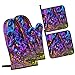 4 PIECE SET:2 oven mitts (7.2x11in) + 2 pot holders (8x8in), one of the rainbow titanium glass potholders has a pocket. Fit for any hand. A necessary tool in the kitchen. They all come with hanging loops for easy storage and take up very little kitchen space.