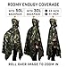 COMFORTABLE COVERAGE: Our camo rain poncho with hood for outdoor activities, normal fold size is 41"x55", unfond size can be 55"x82", Suitable for most body types.