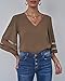 The women casual tops shirt comes with v neck and mesh patchwork design. Blouses for women fashion summer. Womens v neck mesh panel blouse. Business dressy work tops for women, work clothes for women, LookbookStore women summer dress shirts.