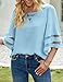 This loose bell sleeve top comes with a basic crew neckline that keeps its style basic yet fashion-forward. Mesh trimmed 3/4 bell sleeves elevate the look! Women summer tops 2023, dressy work tops for women, womens work shirts.