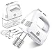 🍰【4 Accessories + Snap-On Storage Case】- Easy to clean and dishwasher safe. 2 × Beaters 1 × Whisk for eggs and creams. The box is connected to the mixer for easy storage.