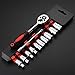 Also includes 3 sizes of extension bars, 1 ratchet wrench, 1 spinner handle, 1 universal joint, 1 sliding T bar, 1 bit adapter and 3 hex key wrenches, along with a blow case to store them all.
