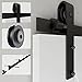 [Sturdy and durable]: The sliding barn door hardware kit is made of high-quality carbon steel, matt black finish, to ensure the corrosion resistance of the product, to ensure that the barn door kit is still beautiful and not easily deformed over the years, and prolongs its service life.