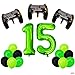 Size: 27 inches Game Controllers, 1 pack 40 inches “15” foil balloons, 12 pieces 12inches black and green latex balloons. That could be used as a foil balloon banner as 15th birthday party decoration or vedio game theme parties.
