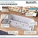Heavy duty sound proof UNDERCOATING and thick rubber PADDING to minimize noise and reduce condensation | SLOPED bottom with DRAIN GROOVES to allow complete water drainage | edgeX 10mm Tight Radius - Ruvati's unique 10mm radius inside corners offer a slightly curved corner for easy cleaning while at the same time retaining the resolutely modern look.