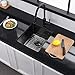 Black Nano Stainless Steel Sink: The Undermount Kitchen Bar Sink incorporates industry-leading nanotechnology into the average stainless-steel kitchen sink,oxidation resistant,and scratch-resistant. The sink is self-cleaning like lotus leaves with a nano-coated hydrophobic surface,non-porous nano structures help prevent oil and sewage from sticking to the sink as if you are using a nonstick pan. R10 rounded corners are designed for cleaning easier and gives ultimate reach to difficult areas.