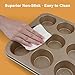 【Safe & Non-Stick Material】Our bakeware with durable food-grade non-stick and scratch-resistant coating allows your food to slide or pop out easily, maintain a good detailed shape and make cleanup almost effortless. Excellent non-stick muffin tray can be achieved with less cooking oil and baking time.