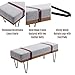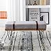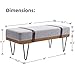🍮UNIQUE DESIGN: This bench has a boxy frame with rounded corners, Comfortable grey linen embellished with two brown leather straps and black metal hairpin legs, features an Art Deco-inspired design and some glam style for a standout addition to your living space or bedroom.