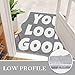 Timeless & Trendy: A chic twist on a classic design, this shaped bathroom rug has a simple yet interesting look that will fit a wide array of bathroom decors. Featuring cute 'YOU LOOK GOOD' alphabets in this bathroom mat, it really stands out.