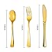 RECYCLABLE & EASY TO CLEAN: Our disposable plastic silverware is made of recyclable material, so you can simply toss it after use, no cleaning hassle. For future use, hand washing the gold plastic cutlery set is a great option.