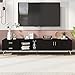Dimensions & Load-bearing Capacity -- Dimensions: 82.7”W x 15.6”D x 13.8”H. ThisTV stand carries a total of 352LBS, 44LBS for open shelves, 110LBS for table top. The UV high-gloss surface of this product is attached with a protective film to effectively prevent the product from scratches. After receiving the goods, the protective film can be removed before put into use.