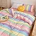 ✔ DESIGN -- This is a duvet cover set, not comforter!!! The comforter is tucked inside the cover when you use it. It is easy to wash and replace, and say goodbye to washing heavy duvets.. Cute Rainbow Stripes Pattern, brings fashion into your home, suitable for children, teens, girls, students, toddler, family and friends. Great gift idea for Christmas, Birthday, Children's Day, New Year, Celebration Festival.