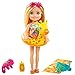This set includes Chelsea doll in a swimsuit with a tropical print, plus a pet chameleon she can hold and accessories that inspire all-day play.