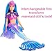 Barbie doll features a magical mermaid look, complete with extra-long blue hair and a beautiful ombre tail with premium touches and sculpted scales.