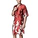 Luschic male robe is sure to draw compliments, stylish knee length, brown coffee patterned, long sleeve, satin, floral, flower, chocolate