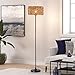 【59” Height Tall Floor Lamp】The over height of the rattan floor lamp is 59 inch. We uses black standing base to get a fashionable style with a large rattan lampshade. The tall reading lamp is equipped with a foot pedal switch in 94.5in extra long cord, very convenient to switch the light on/off by your foot.