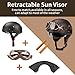 ★ Material: Retro motorcycle half helmet is made of high quality PU leather. high strength, can effectively absorb external shock, reduce the impact on the head, and effectively protect the safety of the head. The inner lens can be zoomed freely, move the switch, the lens can be stored, pull the switch down, the lens can be opened. Detachable ear protection so you can wear it in cold winter weather.