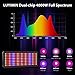 OPTIMAL FULL SPECTRUM & FLEXIBLE DIMMIER: Consists of 3000K warm white, 5000K white, 660nm deep red, and 730nm IR light, which providing your plants with excellent full spectrum led grow lights. The red and IR light are particularly useful during bloom, which can speed up bloom time and enhance high yields to obtain the ideal harvest. An added dimmer knob is featured to manipulate the light intensity at liberty, provides desired needs for plants in all stages from veg to bloom.