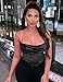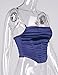 Features - Midriff-baring, asymmetric hem and fish bone support, shirred and ruched front, backless and zip up closure back.
