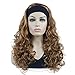 Fashion Long Curly Hair 3/4 Black Headband Wig with Wig-Centering Design.
