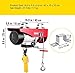 Specificatoins: This light-duty Electric Cable Hoist will lift up to 39 ft. in the air, allowing you to quickly and safely lift any load without problem. High strength carbon steel line cable. Maximum load capacity up to 440lbs/200KG. One line load 220lbs/100KG and doubble line load 440lbs/200KG. Max lift height of 38ft of single line, 19ft of double line;
