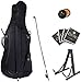Includes: padded lightweight soft carrying case, Brazilwood cello bow, a cello stand, an extra set of cello strings, & a high quality rosin cake