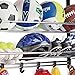 SPORTS RACK WITH ADJUSTABLE HOOKS holds gloves, jerseys, ball caps, hoodies, jackets, windbreakers, and all your other sportswear