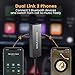 ✔️【Safety Handsfree Calling】This 3.5mm Bluetooth adapter built-in high sensitivity microphone for answering calls, set free your hands, allows you to drive safely and conveniently. Dual link 2 smart phone allowed you to switch freely between 2 phones / tablets / laptops.