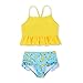 【FEATURES】Spaghetti Straps,ruffle hem,vivid cute printing,short two pieces,high elastic waist