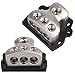 1/0/2/4 Gauge AWG Input 4/8 Gauge AWG Output 3-Way Copper Audio Power/Ground Distribution Block
