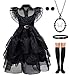 Package Included: Wednesday Addams Dress with 1*belt, 1*socks, 1*clip-on earrings and 1* Wednesday Addams necklace. Hand Wash Only.